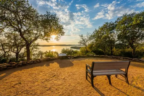 A 1,200‑acre Texas state park featuring the crystal-clear Inks Lake reservoir, maintained at a steady level year‑round to support boating, swimming, scuba diving, and fishing. The landscape includes pink granite outcrops, shady forests, wildflowers, wildlife, and dramatic sunsets.